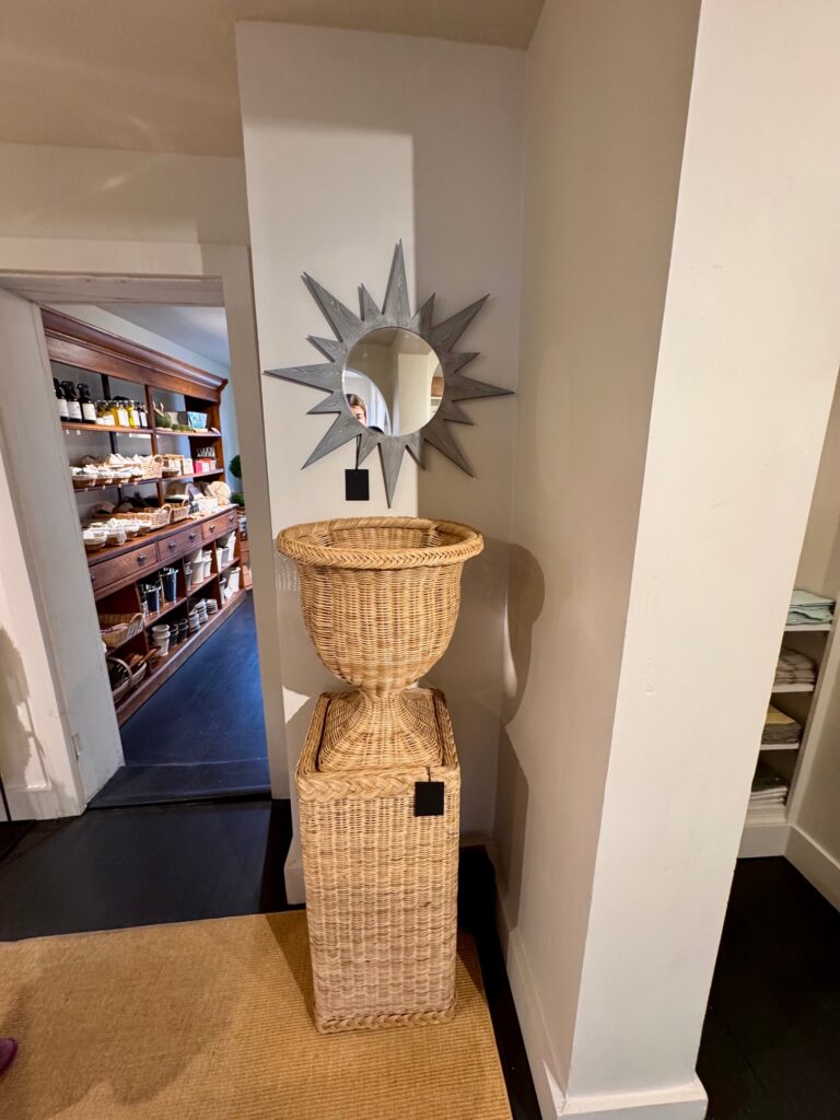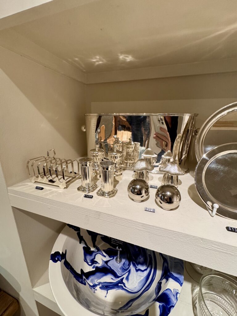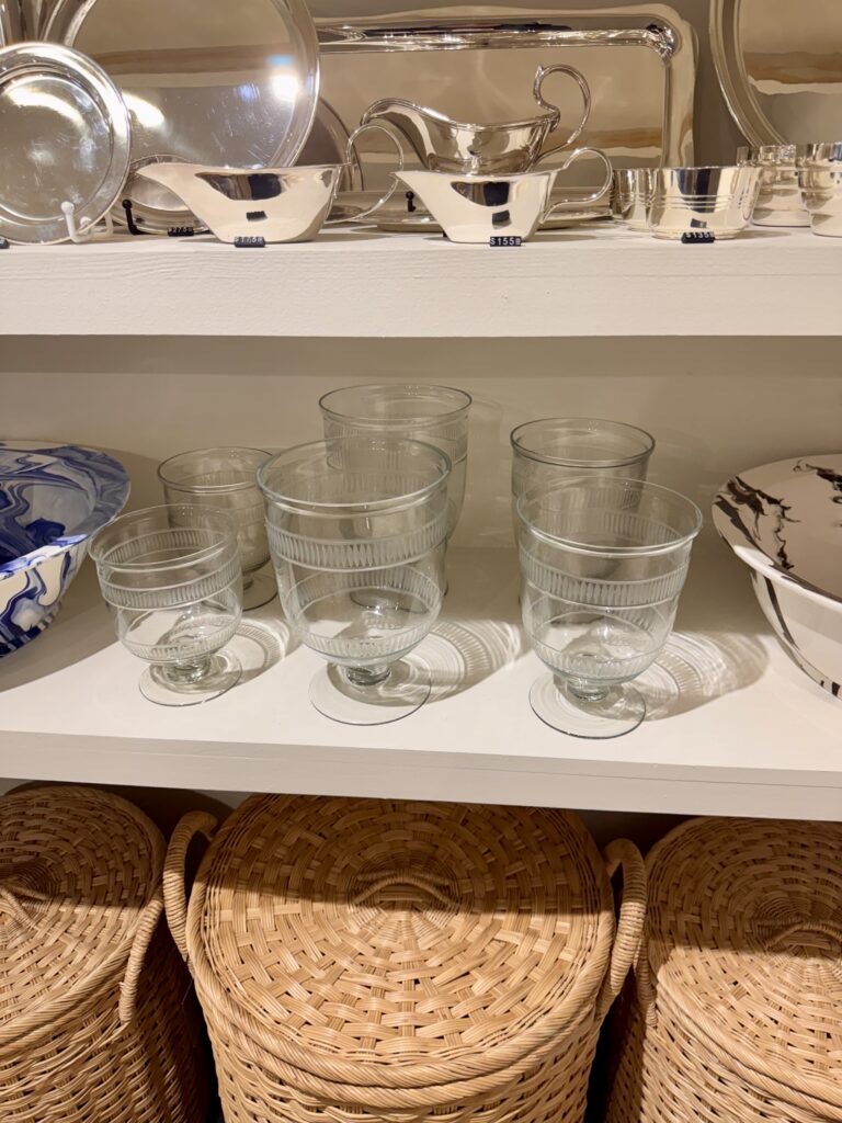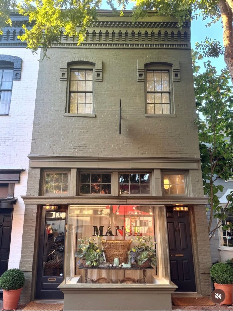 There is nothing I love more than a perfect little shop. There are so many great ones where I live in Birmingham (see here and here for two of my favorites and the complete list here) and I love to seek them out on my travels. On a recent trip to Washington, DC., I had the chance to visit Manse, an absolutely beautiful shop on the corner of “O” Street in Georgetown. Located in a relatively small, narrow space, Manse is packed full of every home goods item imaginable: books, vases, baskets, glassware, art, topiaries, candles, silver, dishes, housewares, frames, tabletop and more. Not only are the products amazing but it’s the way it makes you feel when you walk inside that is so special. The exterior is painted a pretty warm green that stands out on the cobblestone street and you’re welcomed into a Cotswolds-like experience when you walk in the front door.