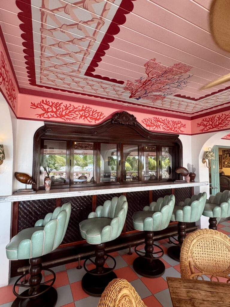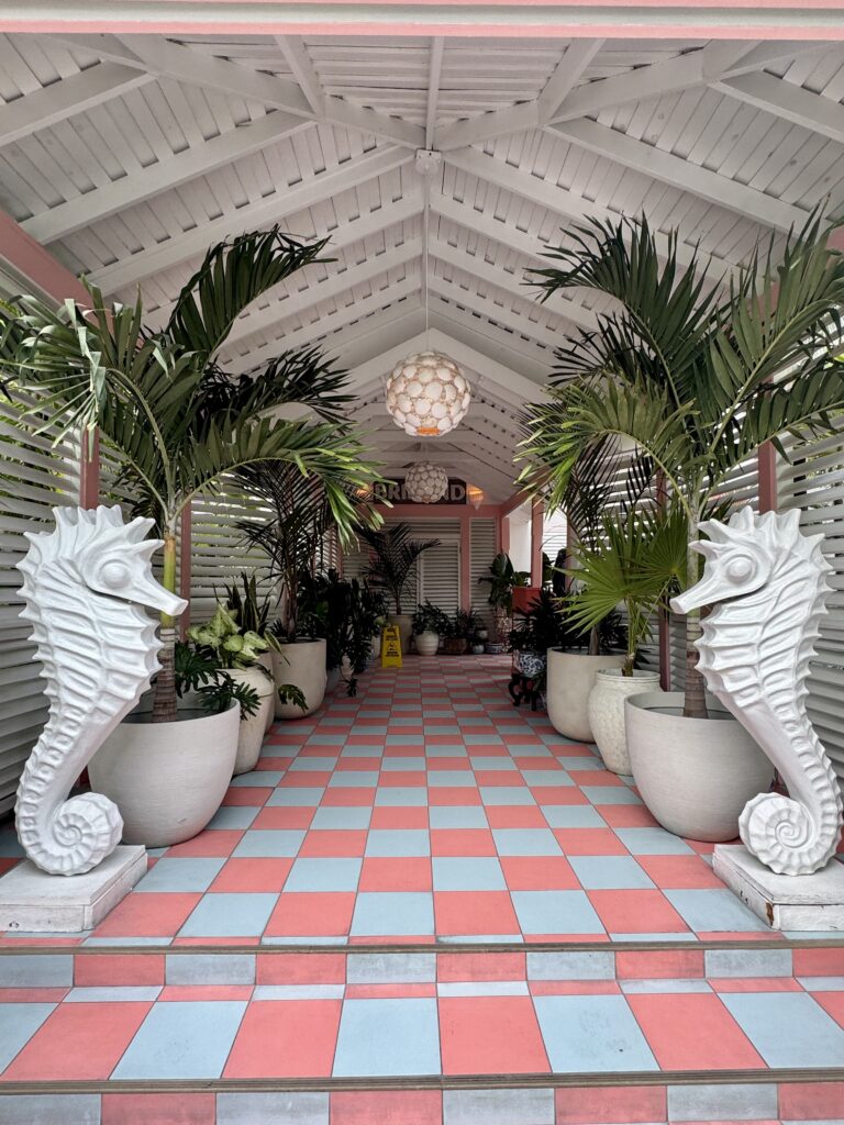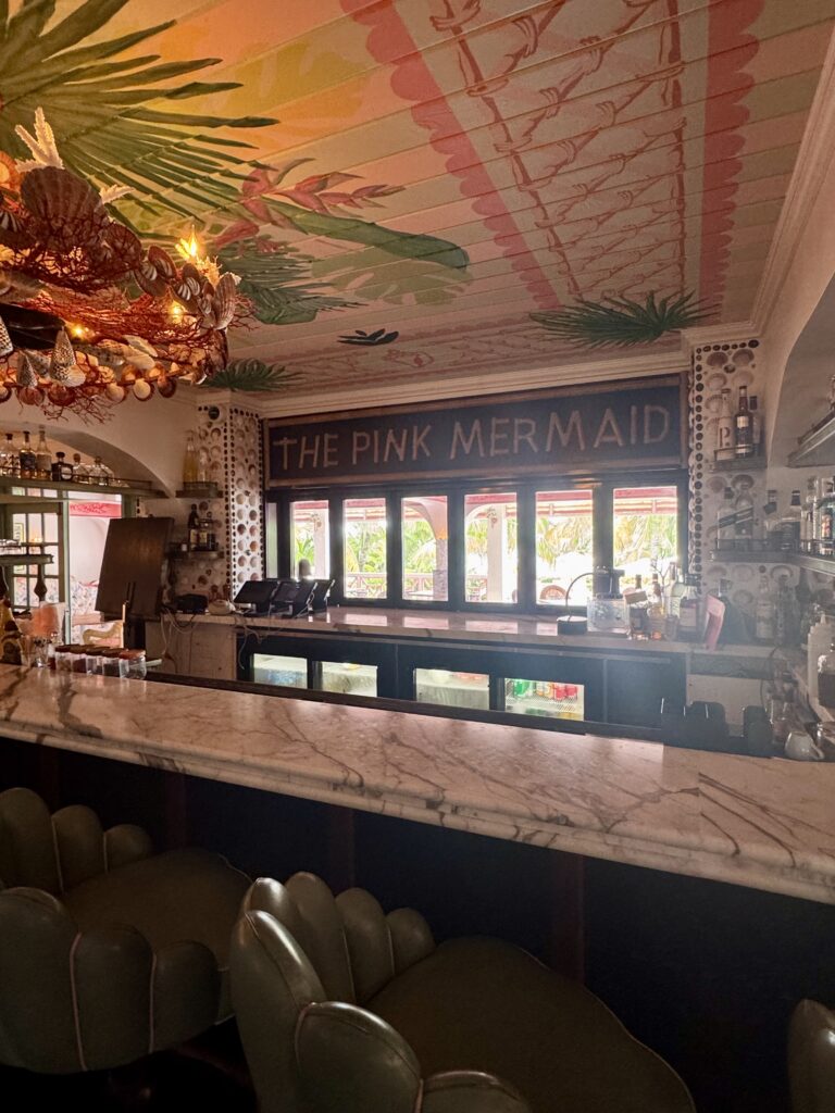 The day my friends and I were having lunch at Coral Sands in Harbour Island last summer, they were literally closing all the doors for renovations as we were leaving the restaurant. This was apparently the beginning of their second phase of renovations but they’ve recently fully re-opened in all their pink, seashell and mermaid glory.