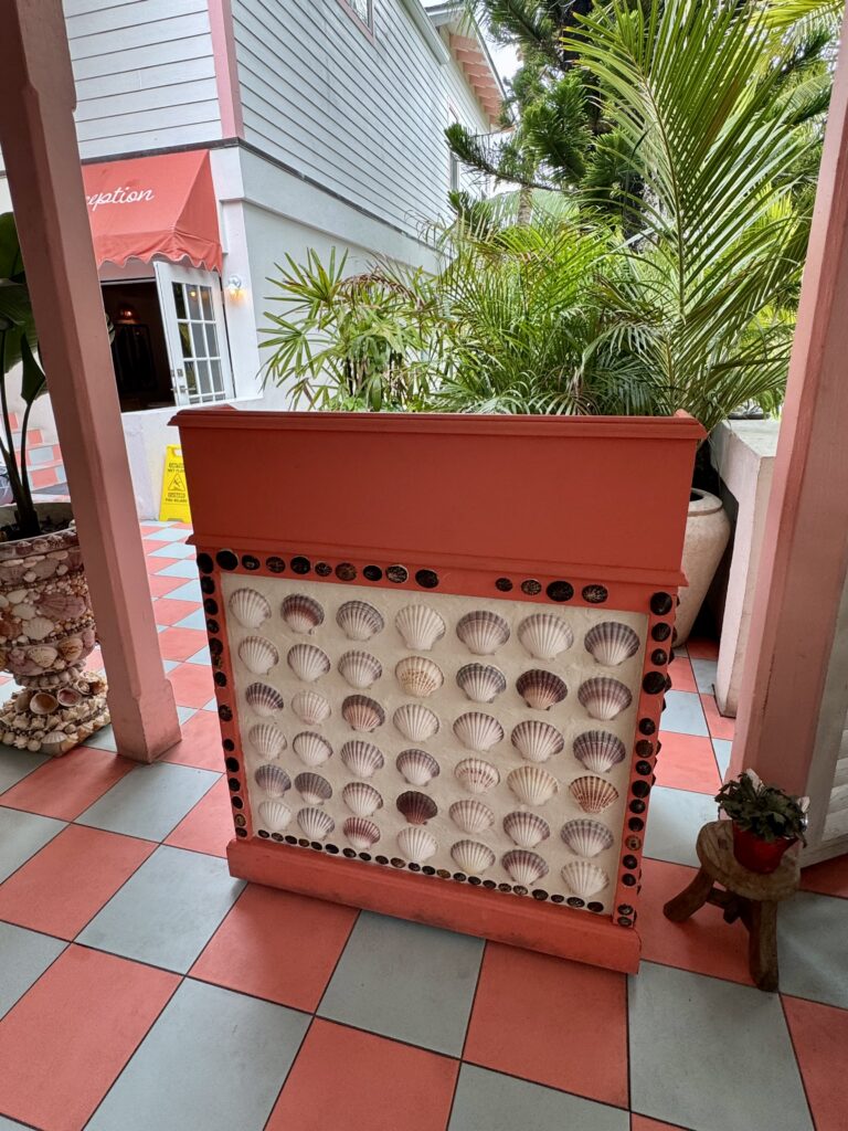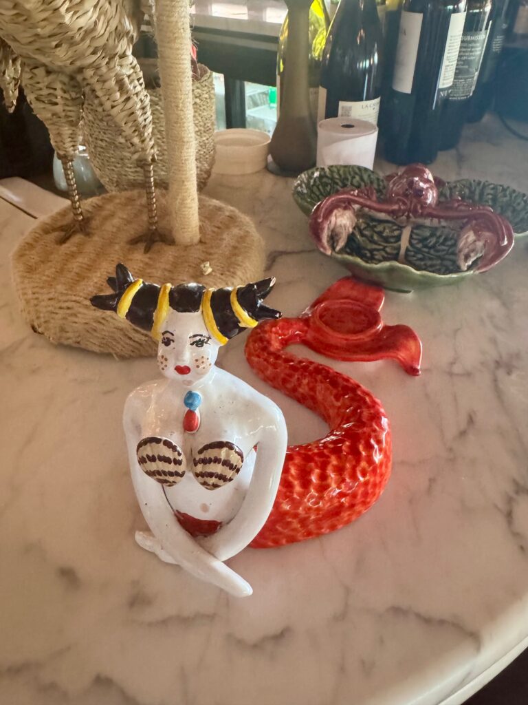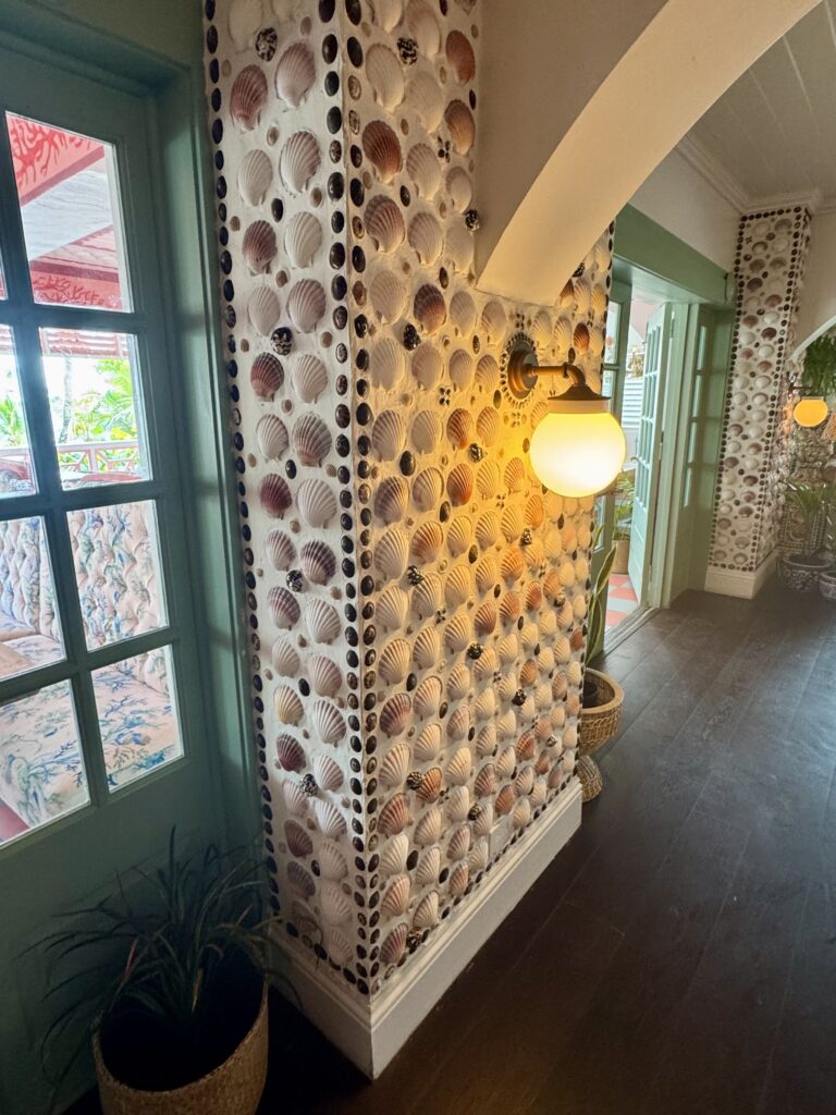 While we were not staying at the hotel (rented this Airbnb instead with our large group), it was great for lunch and we spent lots of time walking around the property ooh-ing and aah-ing at all the incredible design details featuring mermaids, roosters, coral, shells (apparently there are 7000 + in the bar & restaurant alone), perfectly mismatched picture frames, and so much pink, pink, pink. There is even a mermaid in the bottom of the pool! I was in heaven.